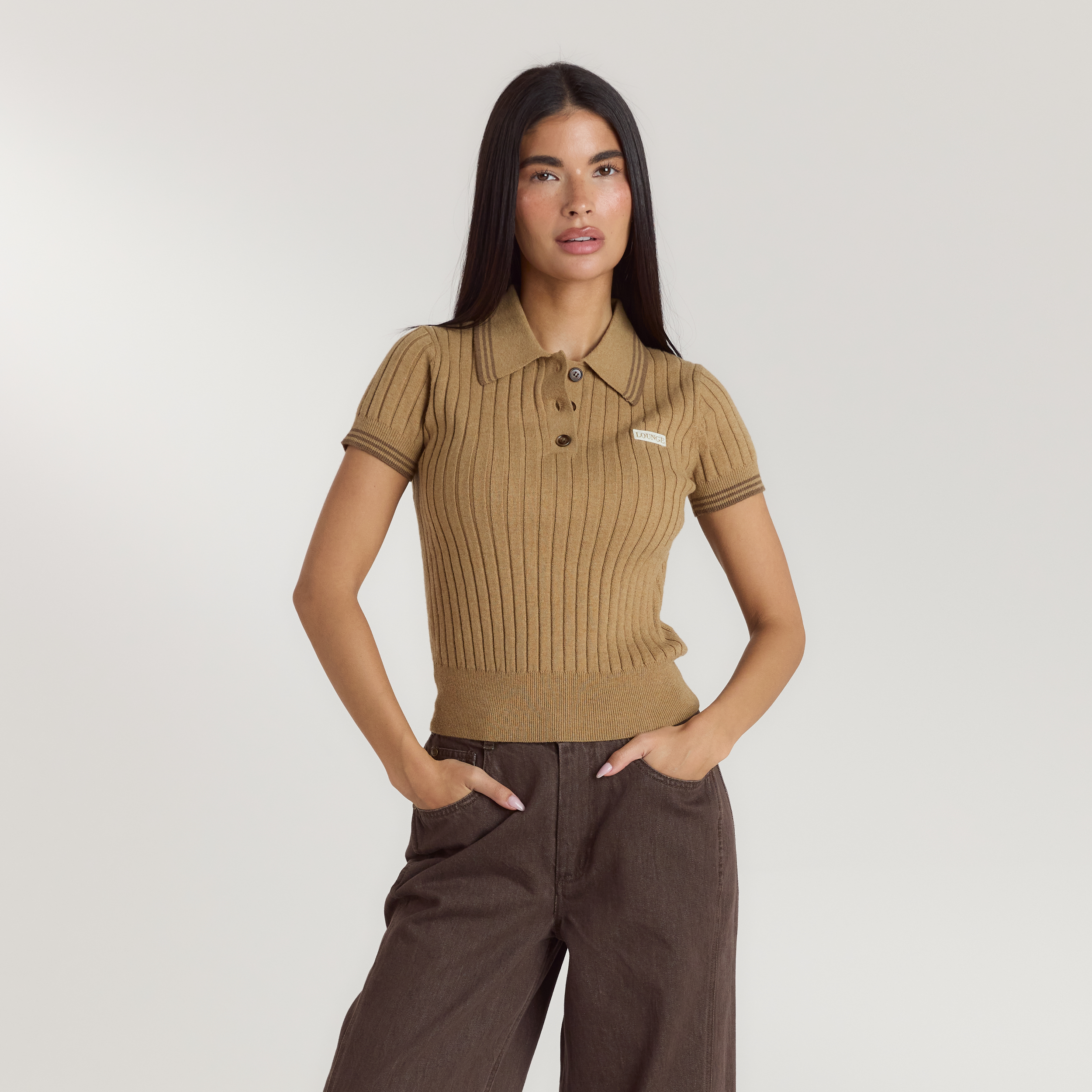 This slim-fit polo top is slightly cropped for a flattering fit - and the unique striped edging and stylish horn buttons come together to create the definition of 'elevated everyday'.