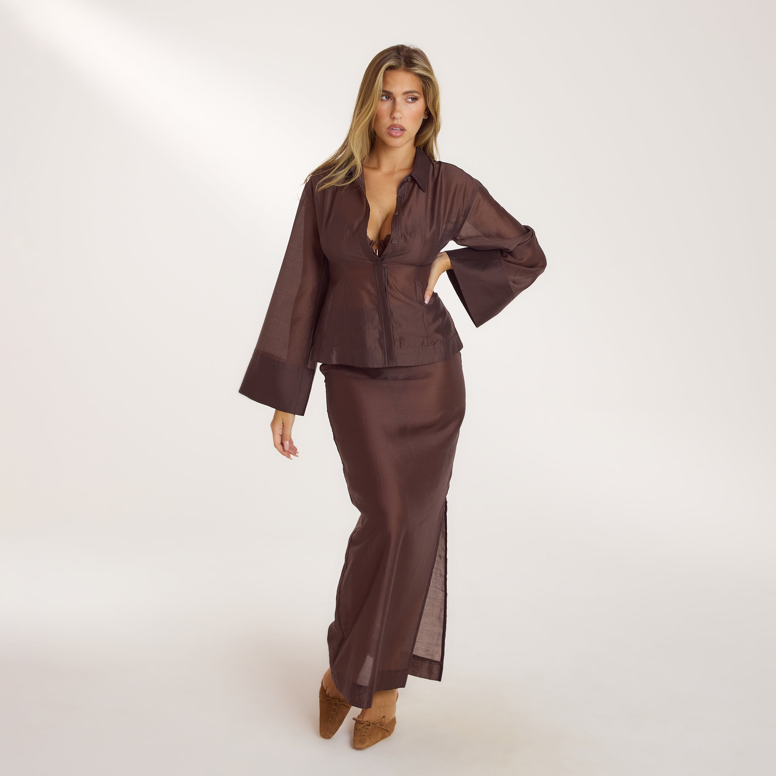 Sheer Maxi Skirt - Chocolate